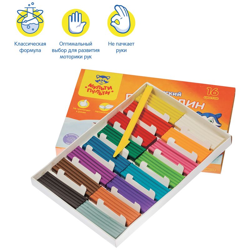 Пластилин Мульти-Пульти предназначен для лепки и моделирования. Не прилипает к рукам, имеет яркие, сочные цвета, которые легко смешиваются друг с другом. Для детей старше 3-х лет.
