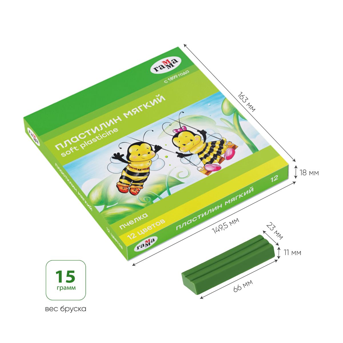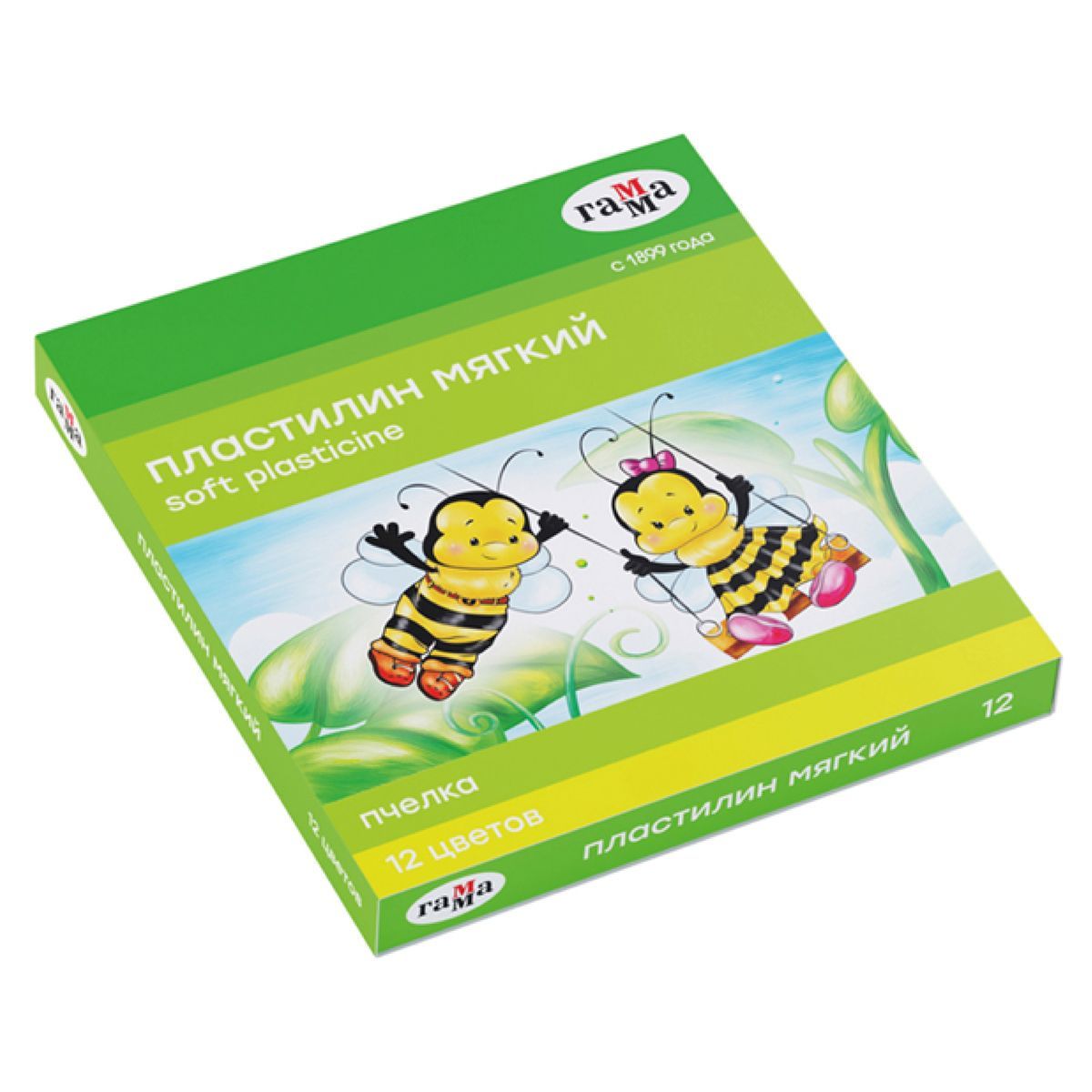 УЦЕНКА - Пластилин восковой мягкий Гамма "Пчелка", 12 цветов, 180г, со стеком, картон. упаковка