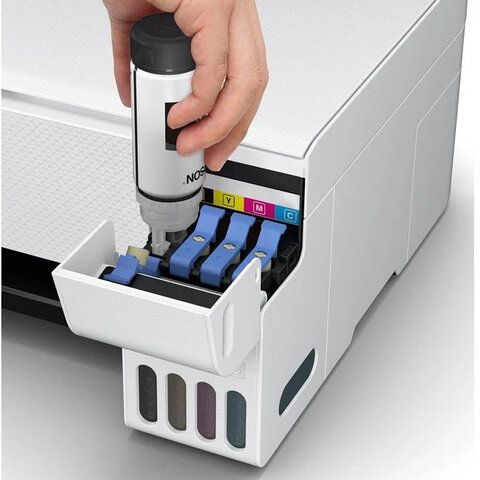 - Струйный . Чаще используется в домашних условиях. Работает не быстро, но может печатать качественные фото. Количество цветов от 6 и более. Многочисленные оттенки получаются за счёт смешивания основных цветов. Для офиса МФУ со струйным принтером рекомендуется оснастить СНПЧ, чтобы заправка картриджей была реже. Из отдельно стоящего блока будут подаваться чернила в нужных для делопроизводства объемах.